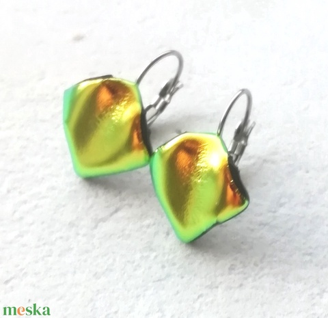 NEMESACÉL! Zöld-arany ragyogás dichroic fülbevaló.