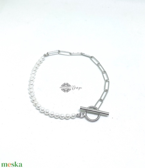 Ezüst paperclip karkötő tenyésztett gyönggyel