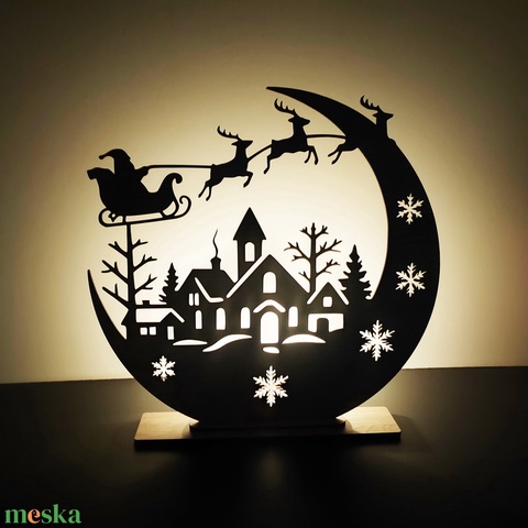 Karácsonyi gyertyatartó – Holdfényes falu és szán jelenet