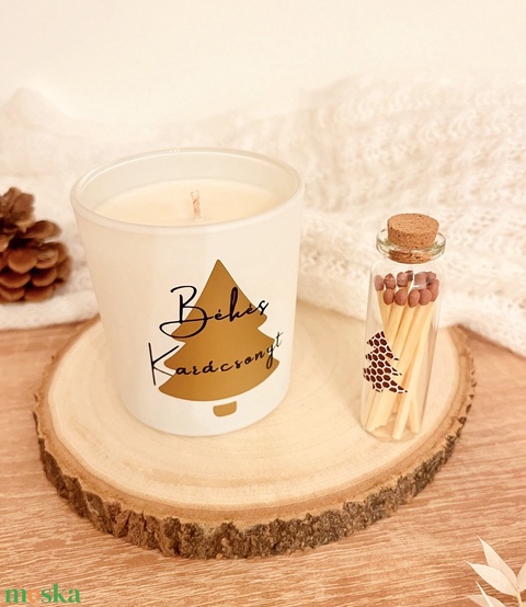 Békés Karácsonyt – illatgyertya, gyufás üvegcsével