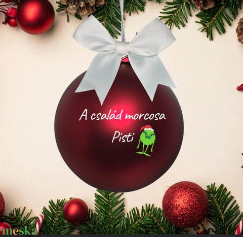 PIKTOGRAMMOS EGYEDI FELIRATOS KARÁCSONYI GÖMB PIROS 8 cm (808gomb)