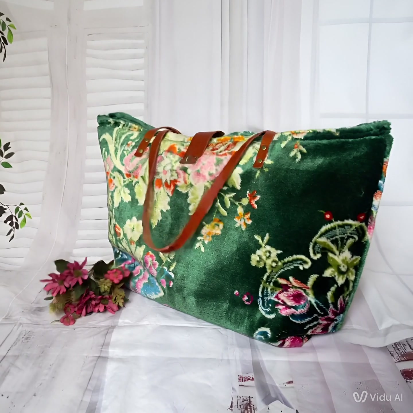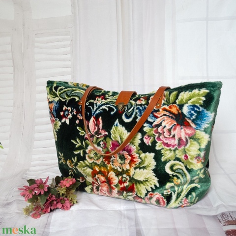 Extra nagy egzotikus szőnyegtáska, Virágmintás szőnyeg válltáska, Puha és bársonyos szőnyegtáska