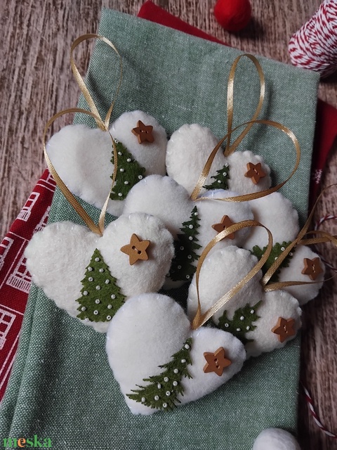 "Zöld fenyős szivecskék" karácsonyfadísz szett