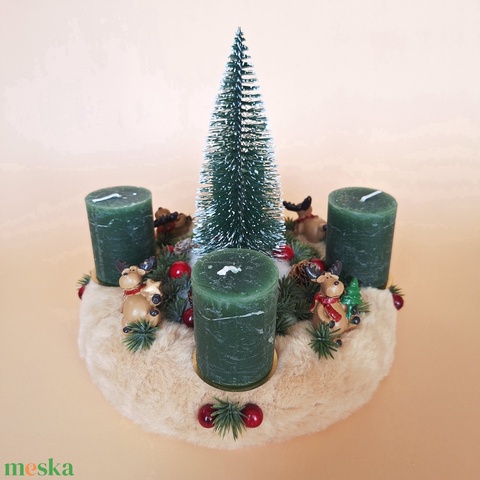 Adventi koszorú-szarvas figurákkal