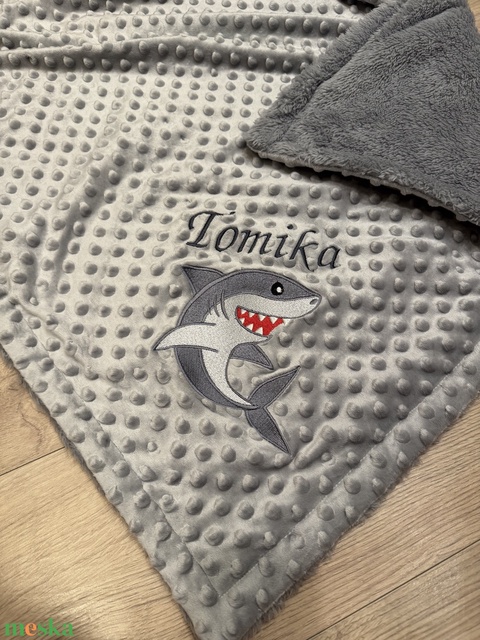 Cápa mintás Minky-sherpa anyagú névre szóló babatakaró
