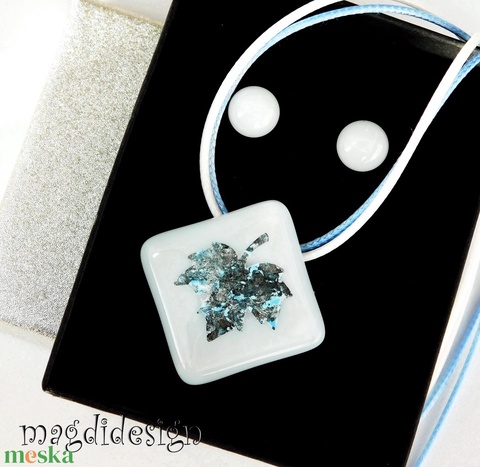 Zizegő levél fehérben üvegékszer szett, nyaklánc, stiftes fülbevaló