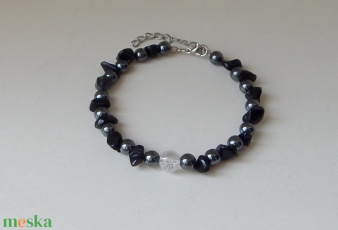 Hematit, obszidián és hegyikristály karkötő