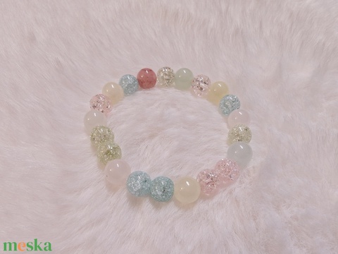 Hegyikristályból és achát féldrágakőből készült egyedi karkötő, mérete 14 cm. Ha ettől eltérő méretre van szükséged, megrendeléskor jelezd a megjegyzésben, a méretedre igazítom.