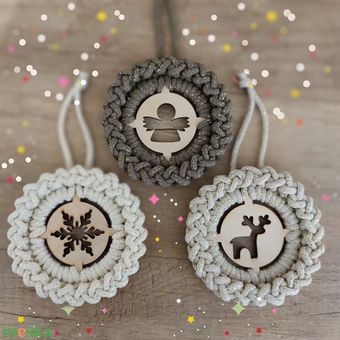 Bézs karácsony - horgolt karácsonyfadísz szett