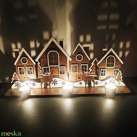 Karácsonyi falucska gyertyatartóval