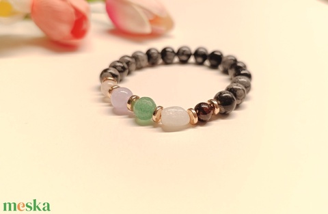 gumis damil, hópehely obszidián, gránát, rózsakvarc, aventurin, szivárvány holdkő, levendula ametiszt, hematit