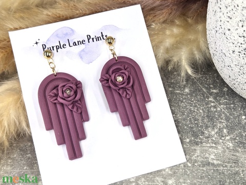ékszer, fülbevaló, fülékszer, polimer, agyag, fulbevalo, elegáns, modern, lila, arany, nemesacél