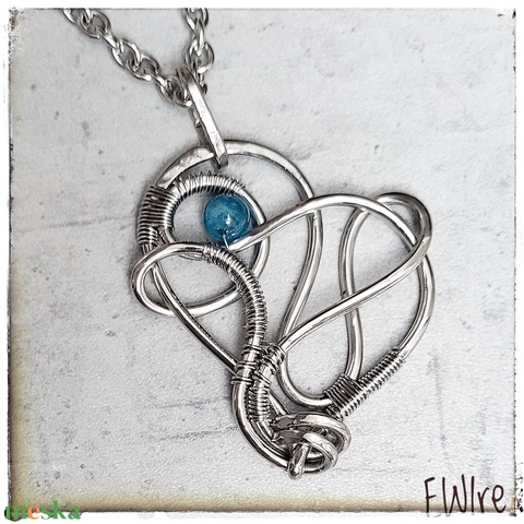 Szív medál, orvosi fém medál kék apatit ásványos drótékszer