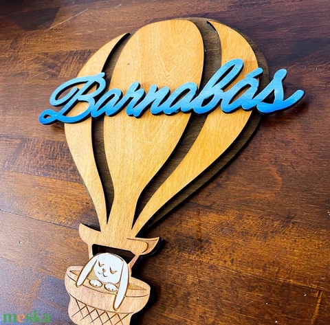 Hőlégballon gyerekszoba dekor, Neves dekoráció, ajtódísz, egyedi ajándék
