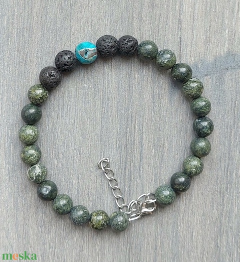 Unisex ásványkarkötő orosz szerpentin, lávakő és jáspis kővel