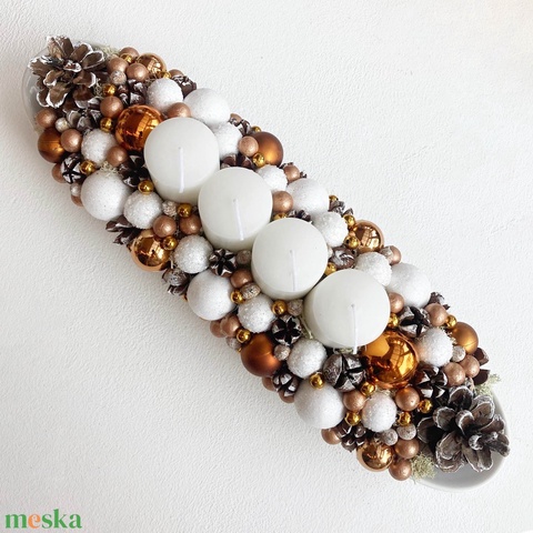 Adventi asztaldísz bronz fehér