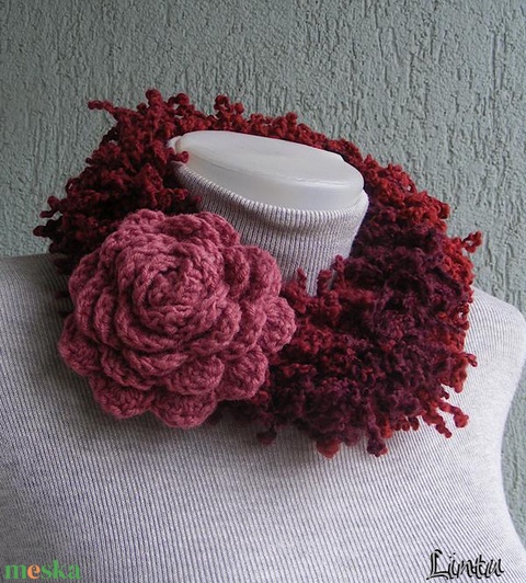 Téli horgolt nyaklánc bordó-piros színekben