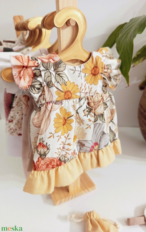 Ruházat, virágos ruha, kalappal - Textiljáték figurákra (Maci, Őzi, Nyuszi, Kutyus, Egérke, Panda)