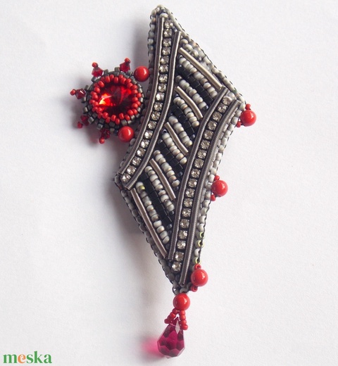 - Anyaga: báránybőr, francia drót, toho kásagyöngy, swarovski kristályok, miyuki kocka, preciosa pearls, preciosa csepp, strasszlánc