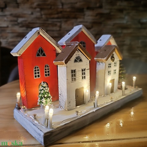 Karácsonyi falu asztal vagy ablakdísz LED világítással