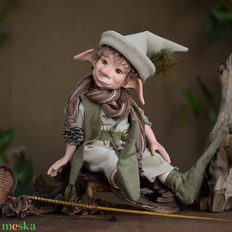 Horgász kobold: ANTON - porcelán, mozgatható