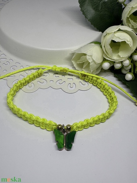 yedi Kézzel Készített Neon Zöld Makramé Karkötő Zöld Pillangó Medállal