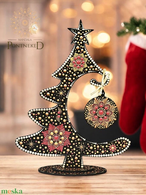 Mandalával díszített karácsonyfa asztali dísz (fehérarany-, vörösarany-, és bordó- metál)