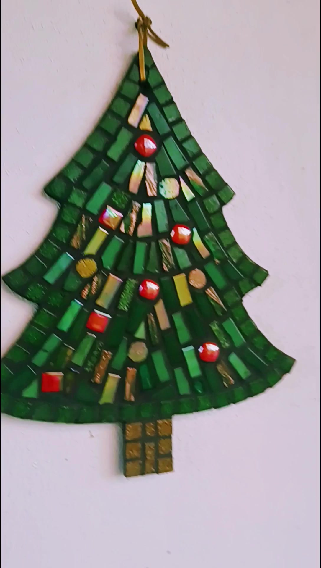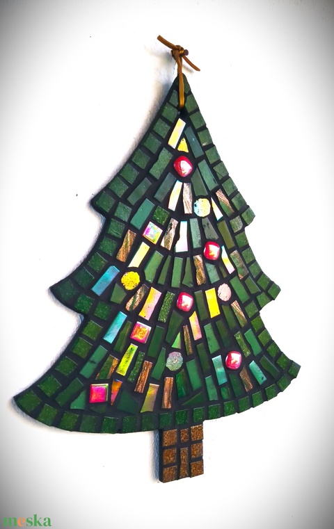 Mozaikos karácsonyfa falidísz – kézzel készült üvegmozaik dekoráció, fa alapon