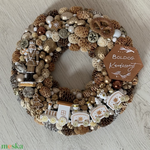 - Anyaga: kerámia figura, karacsonyi gömb, száraz termések, mézeskalács figurák