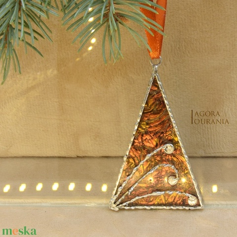 - Anyaga: arany bronz árnyalatú van gogh üveg, ólom mentes ezüst tartalmú forrasztó ón, réz drót, barna selyem szalag