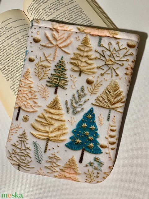 Készleten! Könyvtok - Karácsonyfa mintás ebook tok, tablet tok