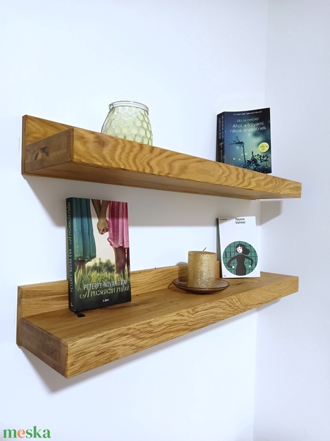 Lebegő tölgyfa polc dekorációhoz és könyvekhez – tömörfa polc - fali polc