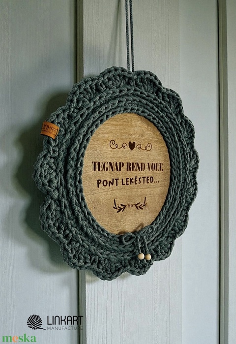 “Tegnap rend volt, pont lekésted” horgolt kopogtató.