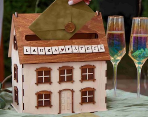 Nászajándék gyűjtő ház, esküvői pénzgyűjtő ház, névre szólóan színes - esküvő - emlék & ajándék - nászajándék - esküvői pénzátadó doboz - Meska.hu