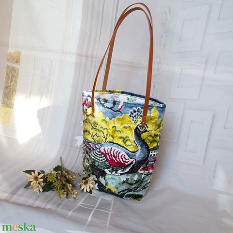 Pávamintás szőnyegtáska, Bársony szőnyeg válltáska, Pávás partitáska, Egzotikus szőnyegtáska
