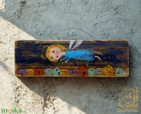 Csillagszóró - Rusztikus Festett Fatábla - Falra akasztható - Ajándék ötlet - Angyal, Gyerekszoba
