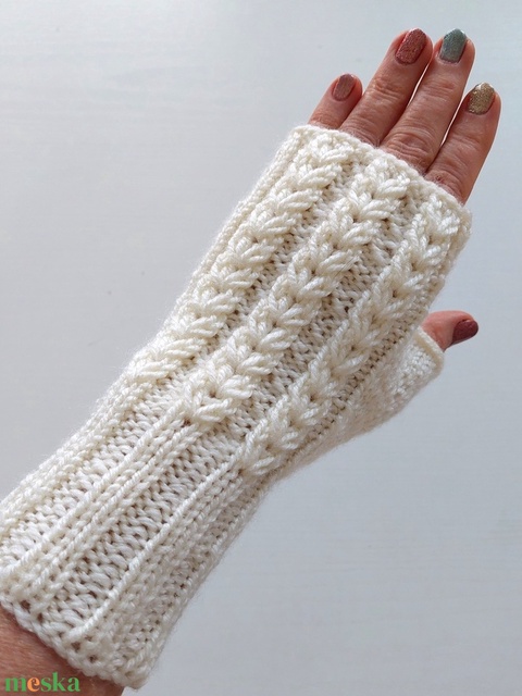 Bordás mintájú, ujj nélküli kötött kesztyű