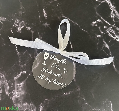 Szarkasztikus Akril Karácsonyfadísz - "Fenyőfa, Pia, Rokonok... Mi baj lehet?" - vicces Ajándék