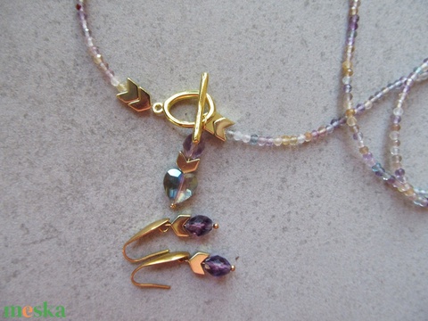 - Anyaga: fluorit (ásvány), kristály gyöngy, hematit (ásvány), rozsdamentes acél (316l)
