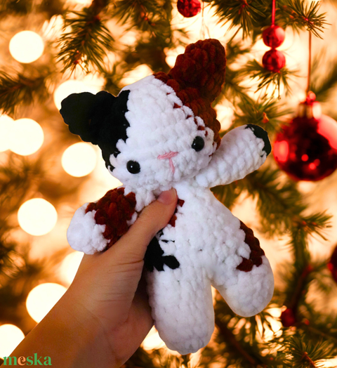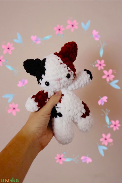 Horgolt foltos cica plüss gyerekeknek