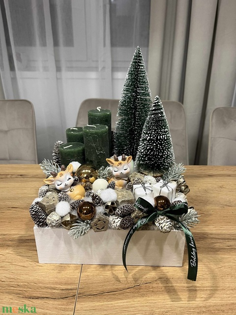 Zöld-őzikés adventi koszorú