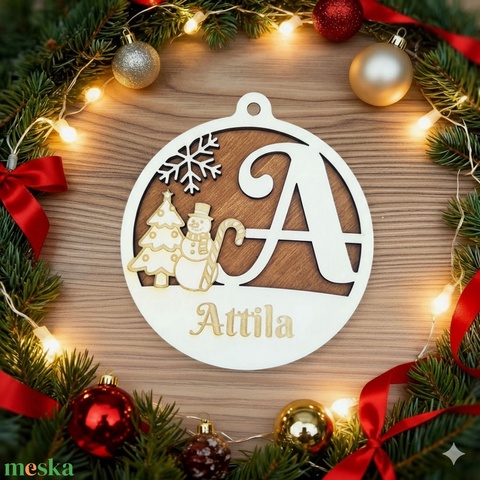Karácsonyfadísz kezdőbetűvel és névvel, hóember