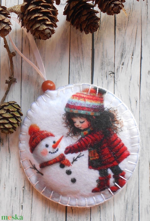 Kislány hóemberrel 1.kör alakú karácsonyfadísz