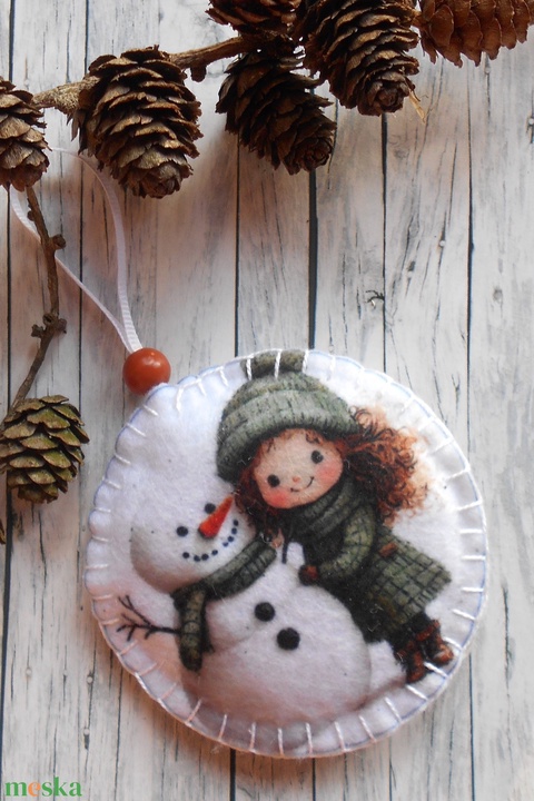 Kislány hóemberrel 2.kör alakú karácsonyfadísz