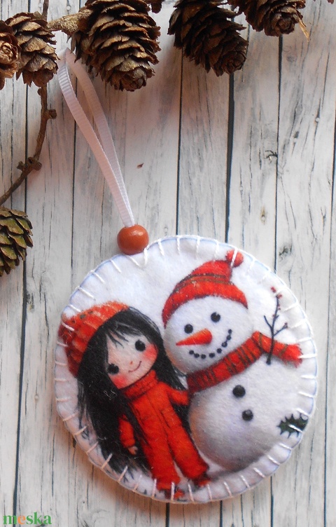 Kislány hóemberrel 4.kör alakú karácsonyfadísz