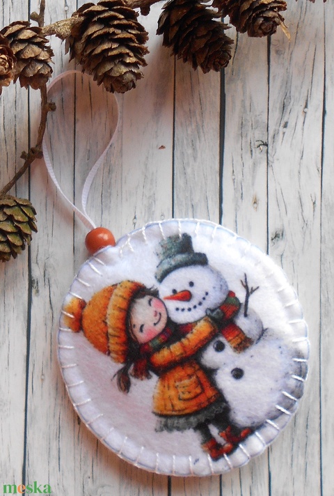 Kislány hóemberrel 5.kör alakú karácsonyfadísz