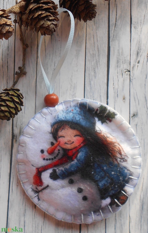 Kislány hóemberrel 6.kör alakú karácsonyfadísz