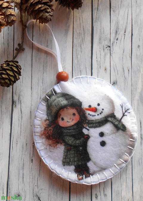 Kislány hóemberrel 10.kör alakú karácsonyfadísz