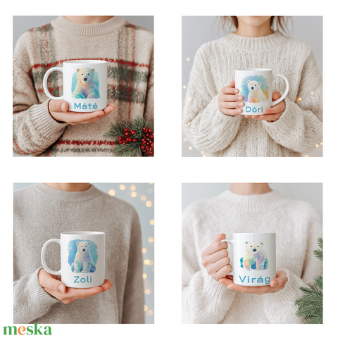 Névre szóló Jegesmedvés bögre – vízfesték hatású minta, 3 dl