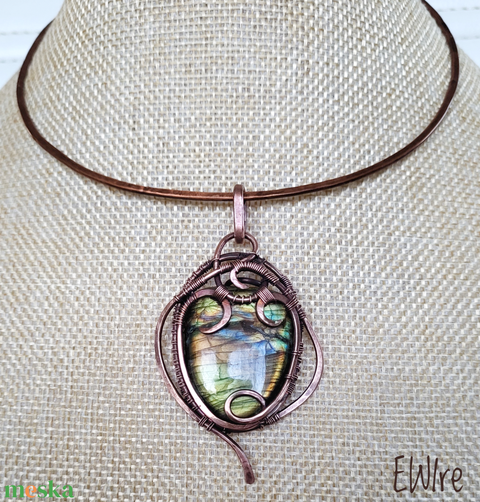 Labradorit medál, vörösréz egyedi medál